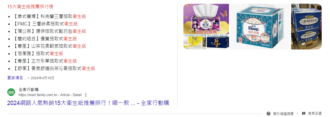 若是某個網頁中針對特定問題的回答極為優秀與清晰,Google就會將其中的答案拉出來展示,這種精選摘要通常能有極高的點擊率與曝光率,但是能被選上大多是可遇不可求;如果真的想被選上,除了答案本身的品質外,讓答案乾淨與簡單的呈現也很重要。