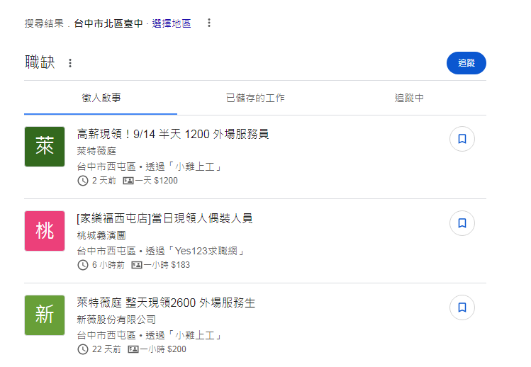 某些資訊本身需要有地域區別才有價值,比如:工作職缺、景點推薦、美食推薦、當地住宿等等,這時候Google地圖是否有架設店家,或是是否有「台北美食推薦」等含地名的關鍵字就顯得非常重要了。